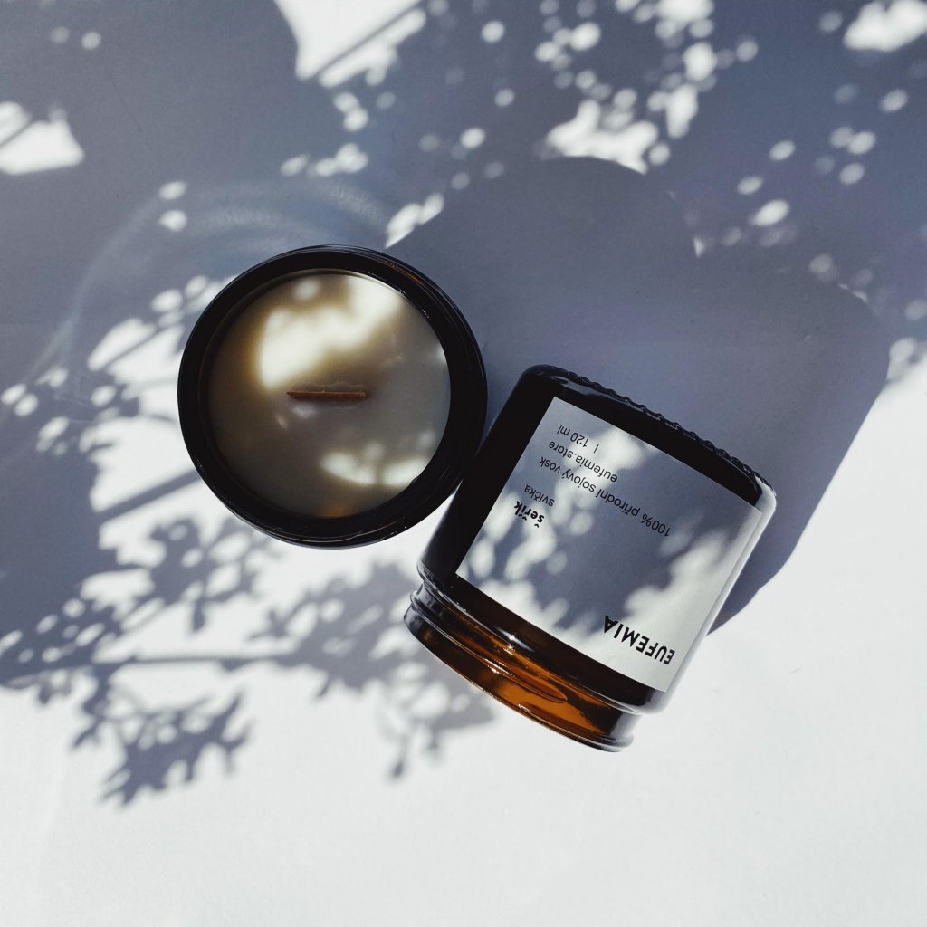 Složení: 100% přírodní sojový vosk, vonná esence (v souladu se standardy INTERNATIONAL FRAGRANCE ASSOCIATION), neimpregnovaný dřevěný knot.